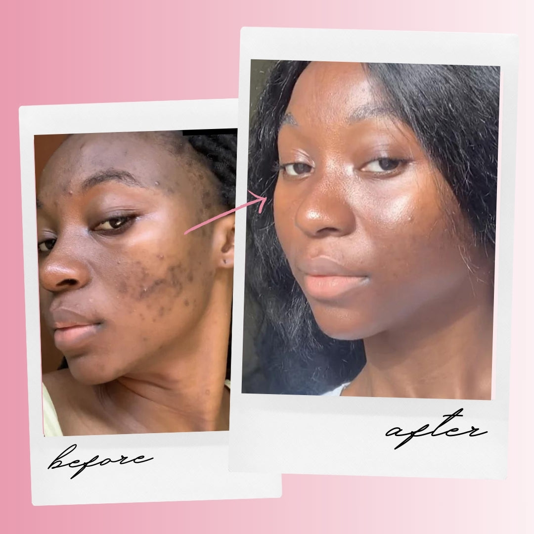 Our formula inhibits melanin production, which causes dark spots and discoloration, resulting in a more even skin tone and preventing new hyperpigmentation from developing