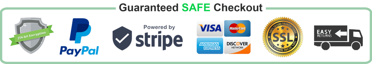 The Checkout Process is Guaranteed to be 100% Safe and Secure with Visa, Mastercard, AMex, Discover, Apple Pay or PayPal.