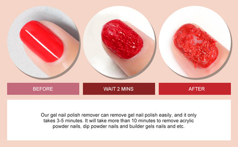 A: It is not easy to remove builder gel, but it can remove gel nail polish, acrylic powder and dip powder nails.